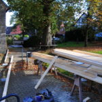 Der schützende Tunnel für die Kirchenbesucher wird aufgebaut